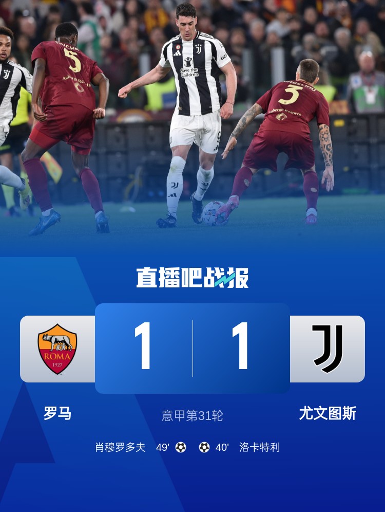 尤文1-1戰(zhàn)平羅馬,羅馬的聯(lián)賽7連勝遭終結(jié),不過(guò)紅狼軍團(tuán)的聯(lián)賽不敗場(chǎng)次也來(lái)到15場(chǎng)。