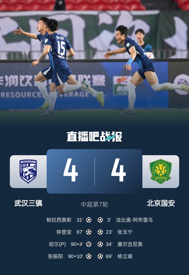 本場(chǎng)比賽最后13分鐘,三鎮(zhèn)連追3球,最終4-4絕平國(guó)安。對(duì)于這樣一場(chǎng)比賽,蘇東點(diǎn)評(píng)寫道: